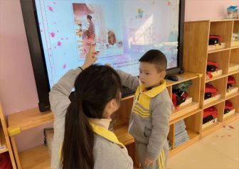 师幼互动加深了解,老师教授幼儿为妈妈捶背、捶腿的方法。在妈妈的节日,你最想对妈妈说的一句话是什么?教幼儿练习说:妈妈我爱你!并亲手DIY小礼物送给妈妈。