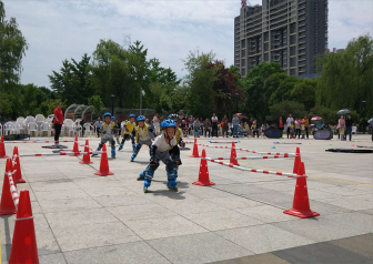 眉县金色摇篮幼儿园在眉县张载文化广场组织了第二届 “心随轮动、滑出精彩” 轮滑拉力赛。在嘹亮的汽笛声中,大班幼儿和中班幼儿穿着整齐的轮滑装备,像离弦的弓箭飞驰在赛道中。轮滑比赛正式开始,轮滑运动员们戴着护具脚踩轮滑鞋在赛道上追逐前行,他们轮番演绎“速度与激情”,随着阵阵欢呼声,时不时引爆现场。比赛过程中小运动员们你追我赶坚持不懈的精神,感动了在场的每一个人观众们。一声声“加油”也将比赛推向了一次又一次的高潮。