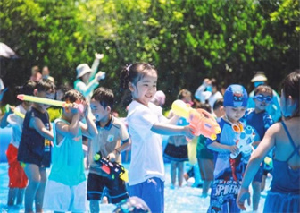 欢笑声、尖叫声、音乐声此起彼伏,在这炎炎的夏日,构成了一曲美妙的嬉水交响乐,象征“快乐”的泡泡不仅带来了夏天美好的祝福,也让小宝贝在快乐游戏中健康成长!